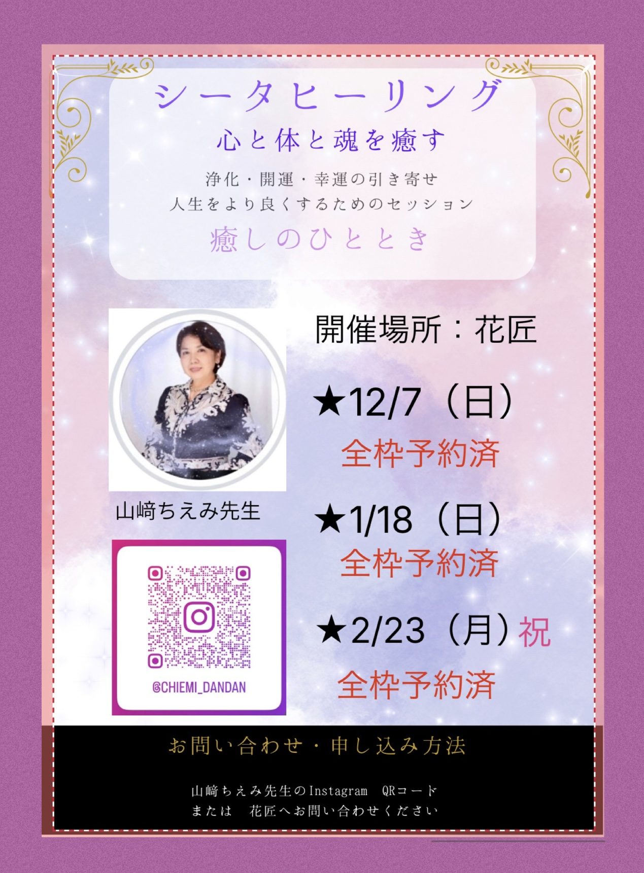 先生のご紹介や、シータヒーリングについては 2枚目のチラシに詳しく載せていますのでご覧ください